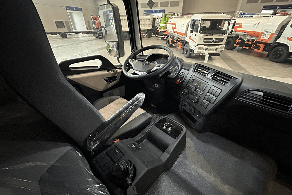 在驾乘体验与可靠性方面,该车围绕矿山运输场景进行深度优化,实现舒适与可靠的双重升级。全新天锦 KC驾驶室采用平地板设计,大幅拓展车内活动空间,司机转身、操作无阻碍,彻底告别传统工程车的局促感。驾驶室内遵循人体工程学布局,标配旋钮式换挡取代传统挡杆,操作便捷省力,有效减轻长时间驾驶疲劳。
