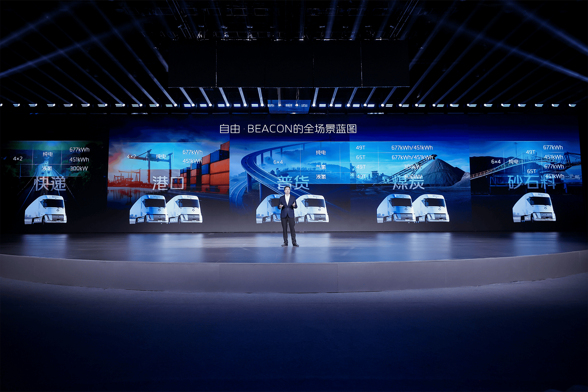 作为基于全球首个正向研发的“可电可氢”智能重卡专属平台研发的首款车型,福田卡文重卡BEACON以彻底打破场景边界为核心价值,涵盖纯电动与氢燃料牵引车系列。凭借覆盖90%重卡运营场景的适配能力、颠覆性技术突破与极致体验,该车不仅回应了市场对长运距新能源重卡的迫切需求,更以全场景适配能力与开放生态理念,为物流行业绿色转型提供高效、可靠的一体化解决方案。
