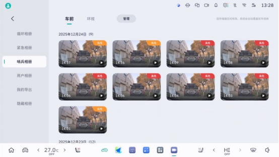 在低危场景下,若侦测到行人、车辆在车身50厘米范围内且时长超过2秒,系统将立即启动预警机制,自动点亮中控屏显示警示信息,同步开启全程视频录制,从源头规避潜在风险。而当遭遇碰撞、异常晃动等直接侵犯的高危场景时,哨兵模式会快速触发高阶警报:按照车主预设完成闪灯、鸣笛等主动威慑动作,同时通过手机APP实时推送警报通知,更将关键视频证据同步上传至云端,为后续纠纷处理、责任认定提供坚实依据。