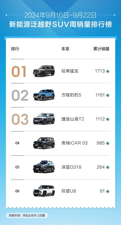 阿拉善英雄会的出色表现也在印证着好产品造就高销量!2024款哈弗猛龙凭借其独特的设计语言、强悍的越野性能、以及强悍的Hi4电四驱系统,成功吸引了众多追求极致驾驶体验的消费者,赢得了信赖。销量一路狂飙,自今年2月起月度销量持续攀升实现6连涨。9月第三周稳居新能源泛越野SUV周销量排行榜第一,高达1713辆的销量是对综合产品力的再一次市场验证。